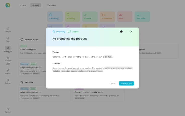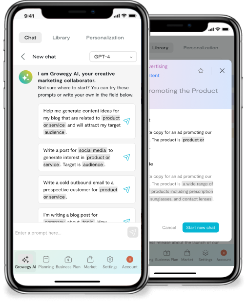 From business plans to research, your first draft to edits, our creative AI is always ready to save your hours of work. Instead of a taking an hour on a first draft of an email, use our prompt-library to instantly create your email, personalized to your business and audience. Now you can spend time on higher-level tasks that AI can’t solve.