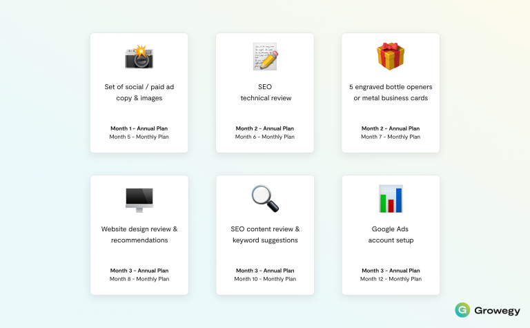 With your dedicated account manager you won’t have to set up Growegy alone. We bring structure and organization to your business, while also being a sounding board for projects and marketing. Ready to take your business to the next level? Ask us about our marketing agency services to ensure your business can launch promotions and get discovered.
