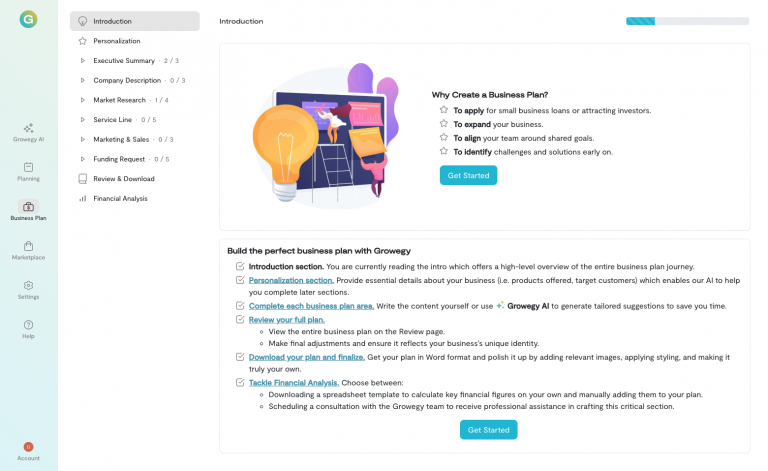 I began using Growegy to enhance my knowledge of business planning. Growegy provides valuable insights into developing a comprehensive business plan, helping entrepreneurs structure their businesses effectively and strategically. Marie [account manager] communicated well which helped me learn how to write a financial analysis based off the training that she has sent me and how to go by filling it out.