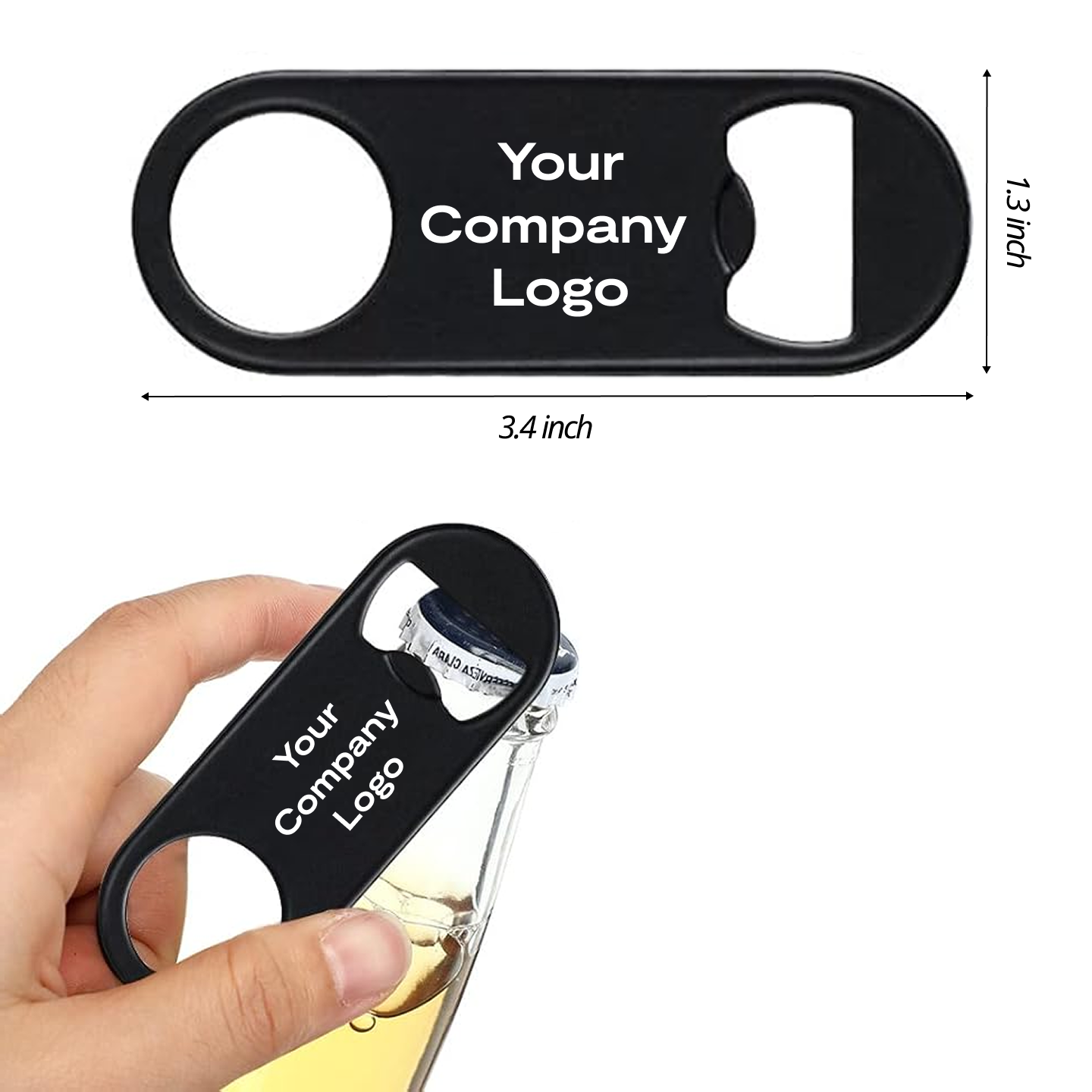 Versatile Functionality: Our thoughtfully designed double-ended bottle opener not only opens bottles with ease but also features a practical round hole for easy hanging. Store it on hooks or kitchen racks, so your clients and partners can always find it—reminding them of your brand every time they reach for a refreshment.