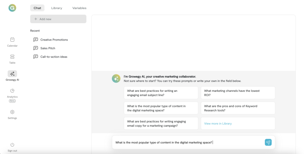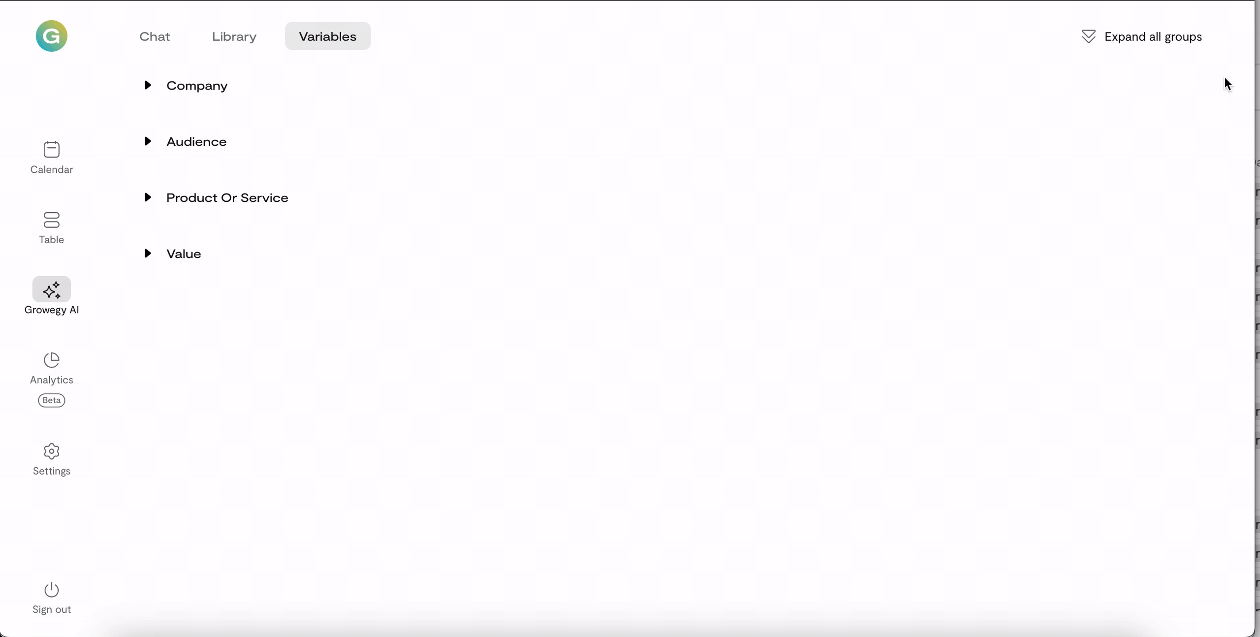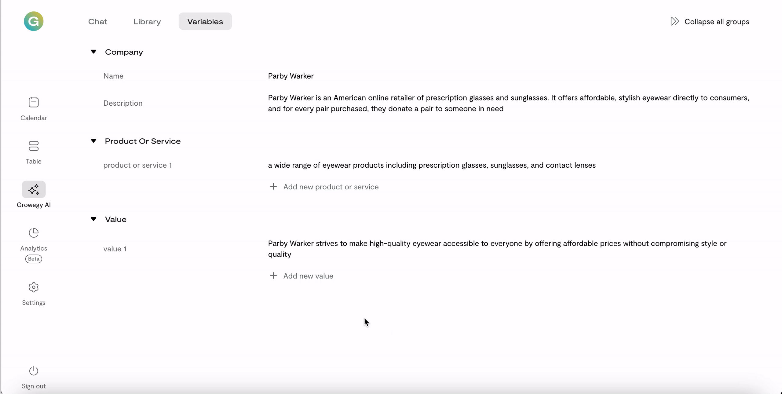 You can use filled Variables in Growegy AI Chat for any custom prompts.  Simply tart typing ‘[’ and choose from the list of available Variables.